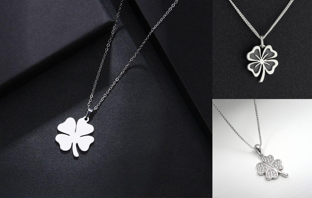 รูปใบโคลเวอร์ 4 แฉก ที่ถูกนำมาทำจี้ทองขาวประดับเพชร ชาร์มรูปใบโคลเวอร์ และเข็มกลัดรูปใบโคลเวอร์ กำลังได้รับความนิยมอย่างมากในฐานะเครื่องประดับนำโชค ที่จะช่วยนำพาความโชคดีมาสู่ผู้สวมใส่ ทั้งในเรื่องของการงาน การเงิน สุขภาพ และความรัก