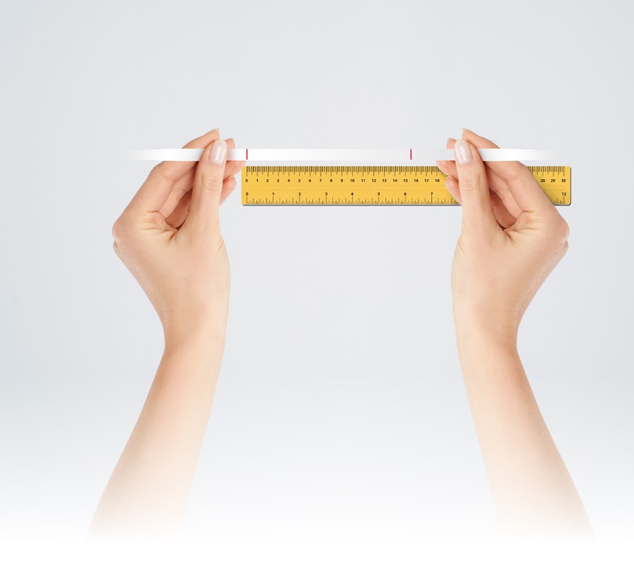 กางเชือกหรือกระดาษเทียบความยาวที่วัดได้กับไม้บรรทัด