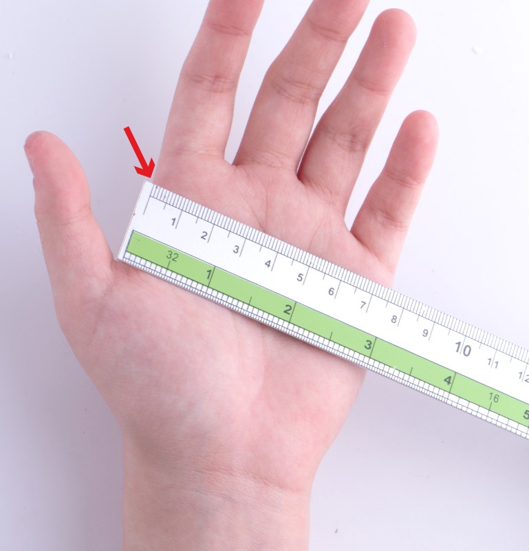 ถ้ามีแต่ไม้บรรทัด ไม่มีอย่างอื่น ให้ใช้ไม้บรรทัดวัดขณะแบบมือ จุดที่วัดคือฝ่ามือจากซ้ายไปขวา โดยไม่รวมนิ้วโป้ง